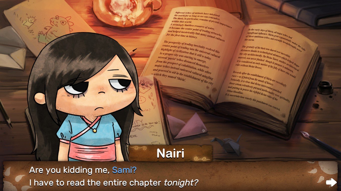 As young Nairi becomes separated from her upper class family in the exotic city of Shirin, she embarks on a perilous journey to seek her way back home. Follow her unique story together with her ex-criminal companion Rex to solve puzzles, make friends and enemies, and uncover a dark mystery tied to the Tower of Shirin.