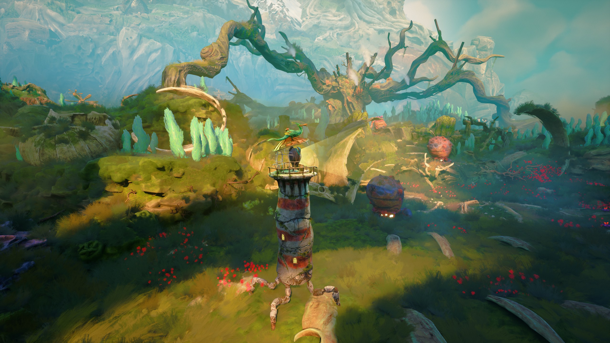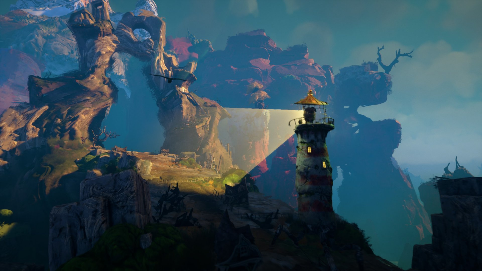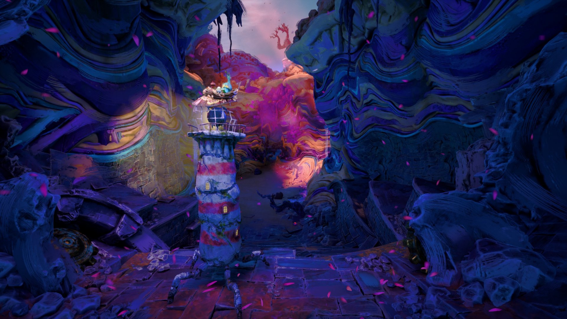 On an island in a long-lost sea, a forgotten lighthouse stands dormant in the shadow of a distant mountain peak. As withering tendrils spread and coalesce, it awakens. Taken with a mysterious sense of purpose and joined by a spirited seabird, it embarks upon a heartening tale of unlikely companionship, an odyssey of mystifying metamorphosis, and an unexpected journey towards the center of the island, into realms beyond understanding.