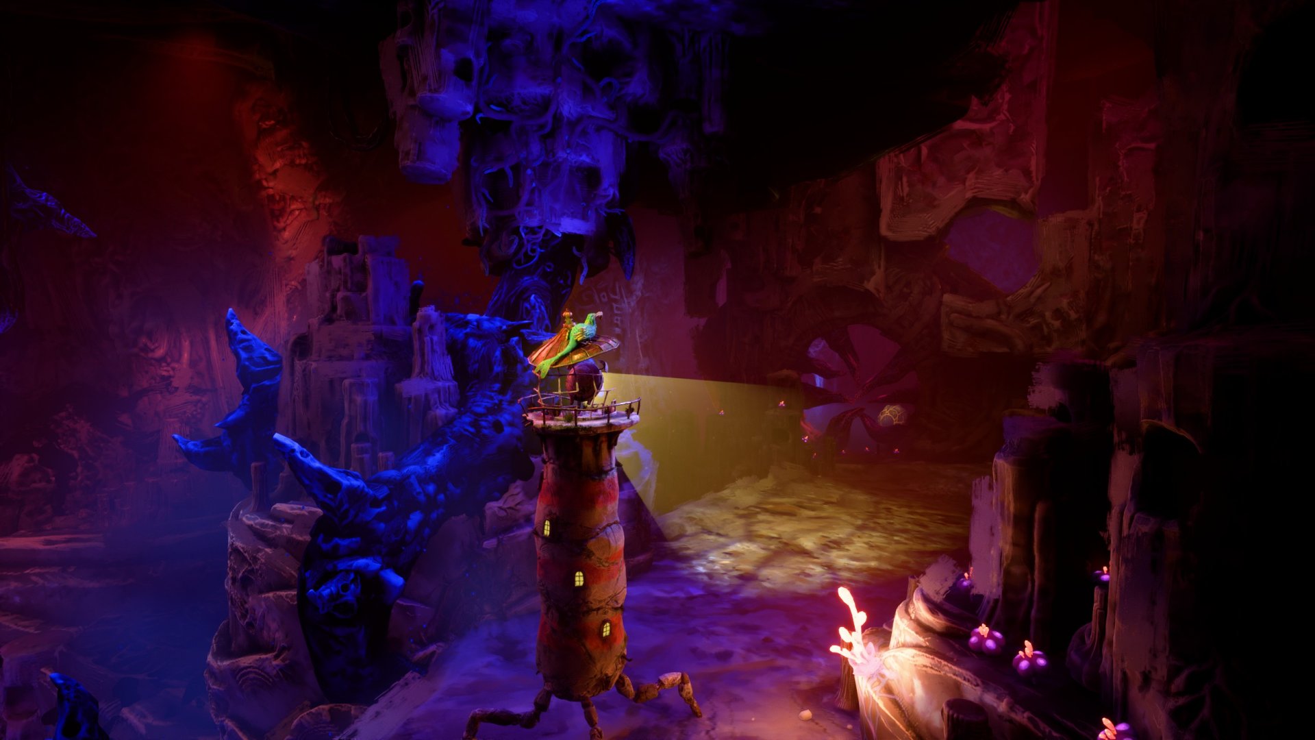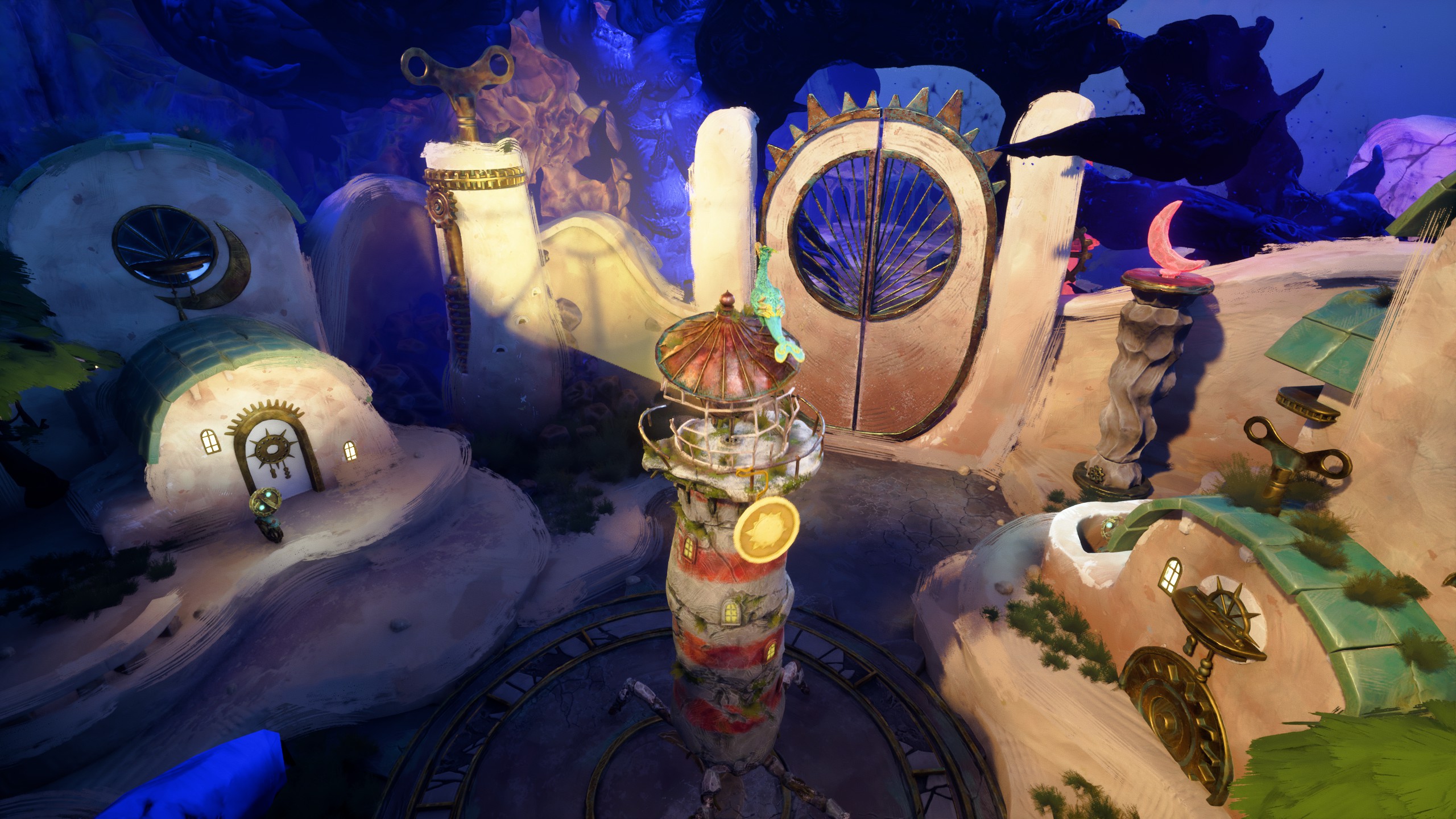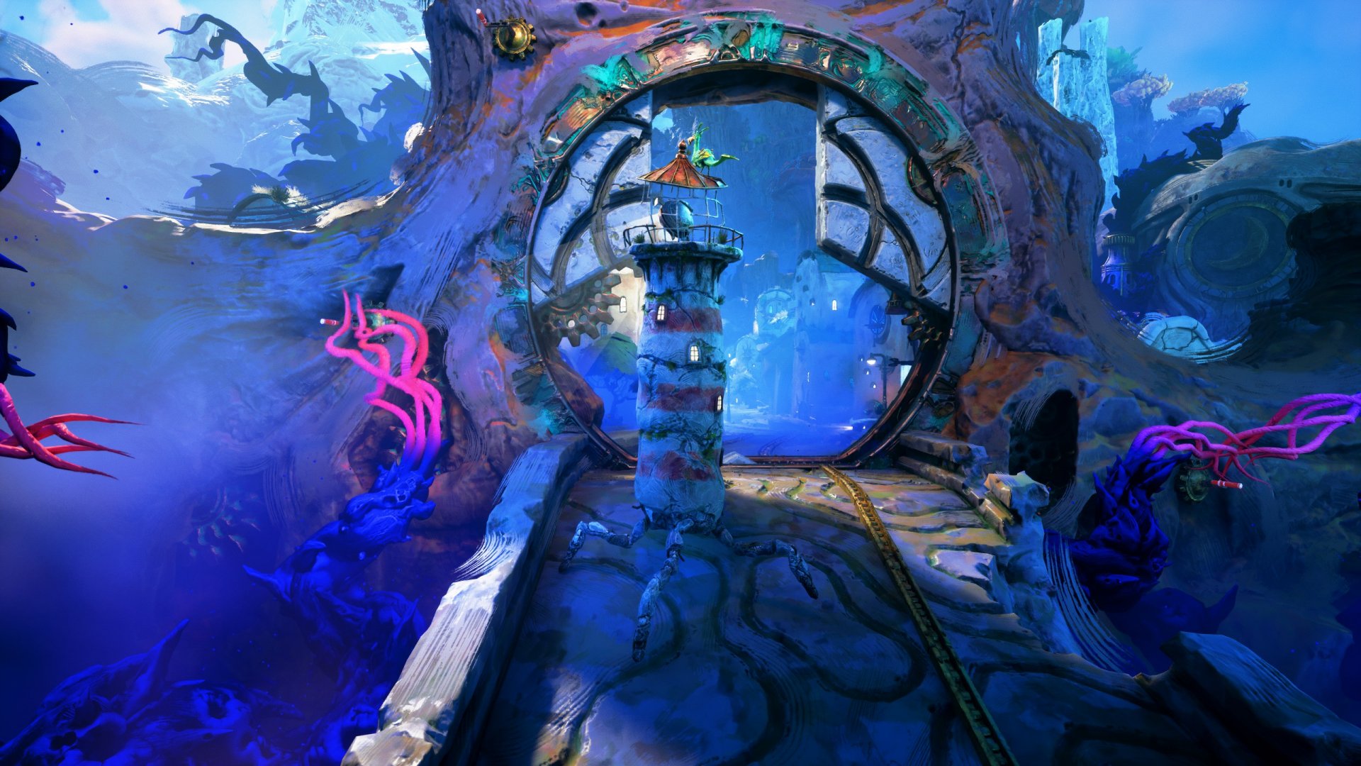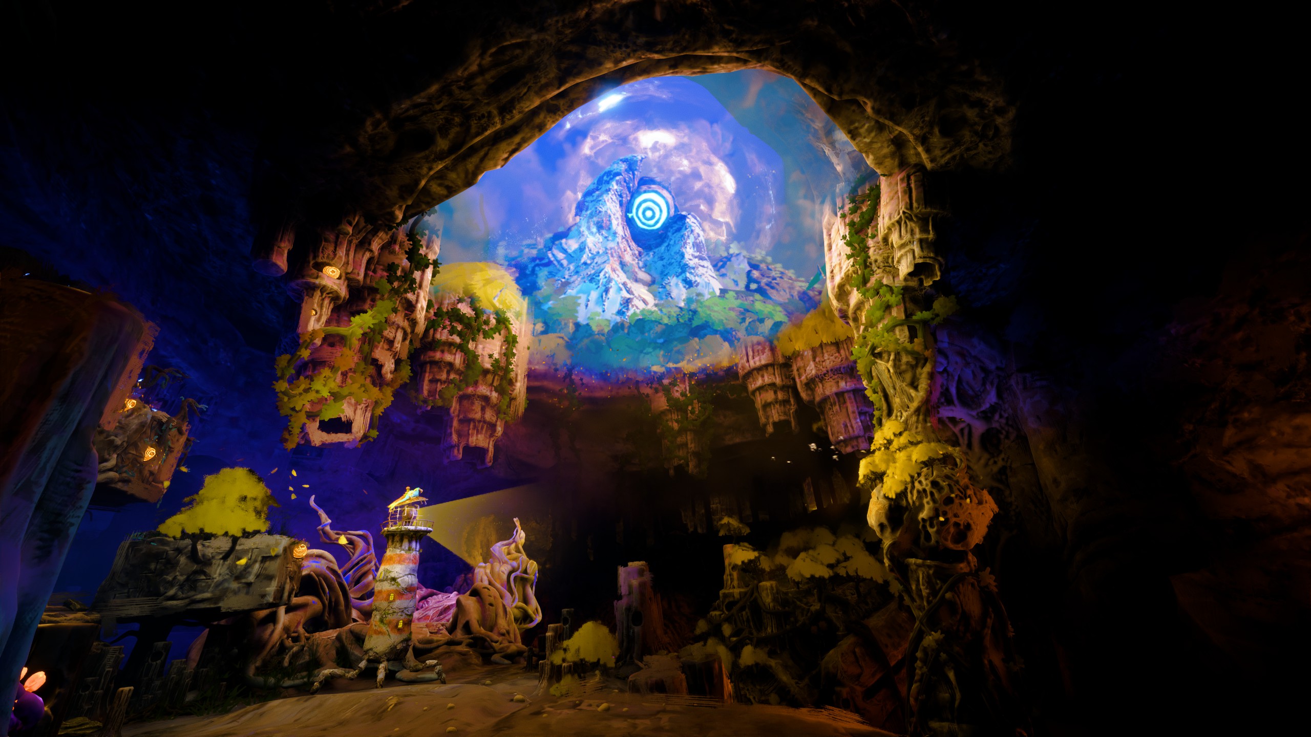On an island in a long-lost sea, a forgotten lighthouse stands dormant in the shadow of a distant mountain peak. As withering tendrils spread and coalesce, it awakens. Taken with a mysterious sense of purpose and joined by a spirited seabird, it embarks upon a heartening tale of unlikely companionship, an odyssey of mystifying metamorphosis, and an unexpected journey towards the center of the island, into realms beyond understanding.