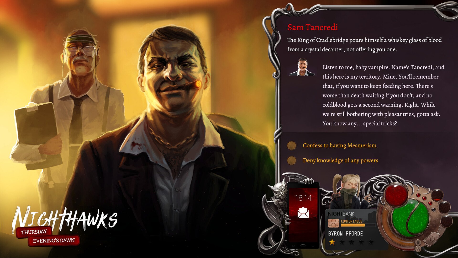 Six months ago, you died and were reborn. A vampire. A predator. Not a mere creature of the night, but one of its masters. At least, that’s how things were supposed to be. Unfortunately, the world has changed. The secret is out. Vampires have finally been exposed, and though your existence is tolerated, your new thirst is not. You came to the one city willing to promise a fresh start, only to find suspicion and starvation waiting on its dark streets. Seize the night as a modern monster, stepping out of the shadows to build a thriving nightclub empire through fear, seduction, and forbidden supernatural gifts. Your second life begins tonight.