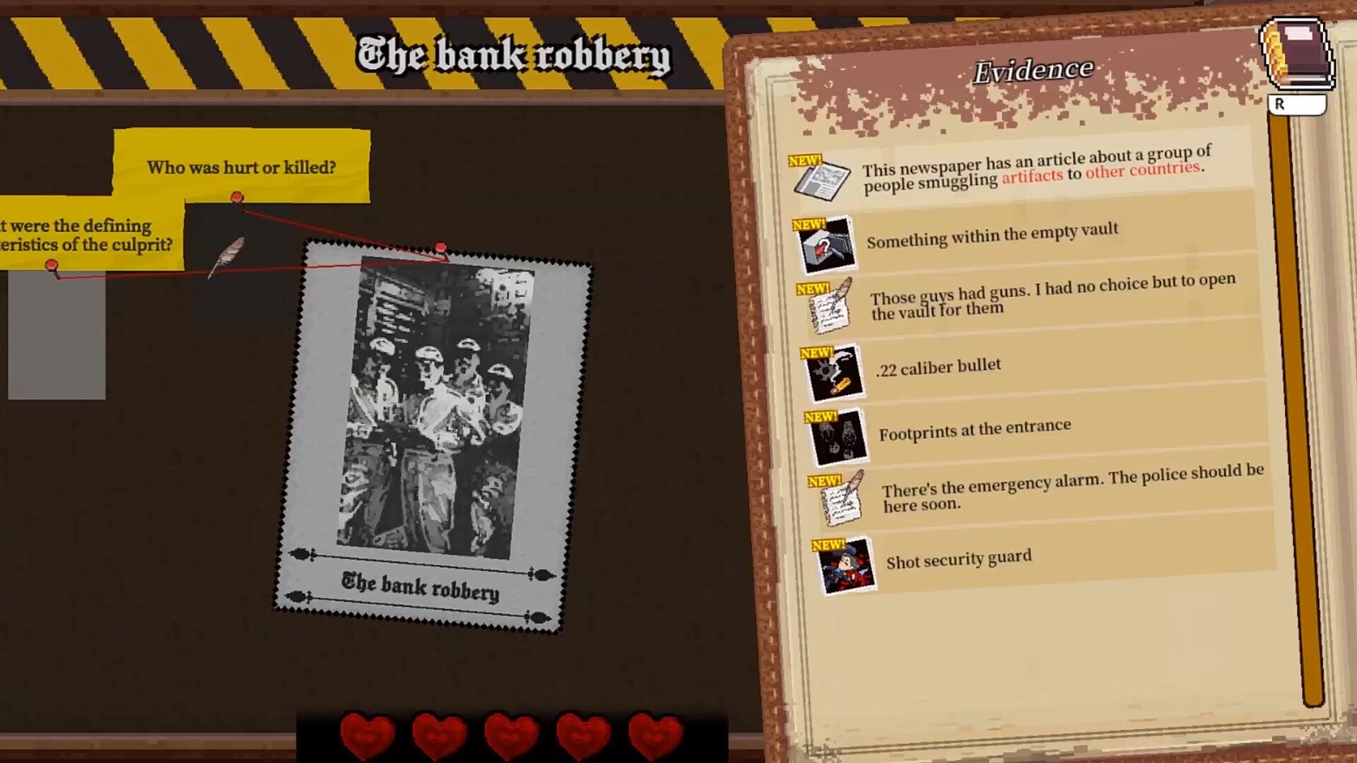 A daring bank robbery shakes the city. The culprits escape with a fortune in cash and a priceless treasure from the vault. As rookie detective Diana, you will dive into this case and many other unresolved mysteries. Can you gather the evidence, expose the lies of suspects, and arrest the true culprit? The outcome depends entirely on your deduction.