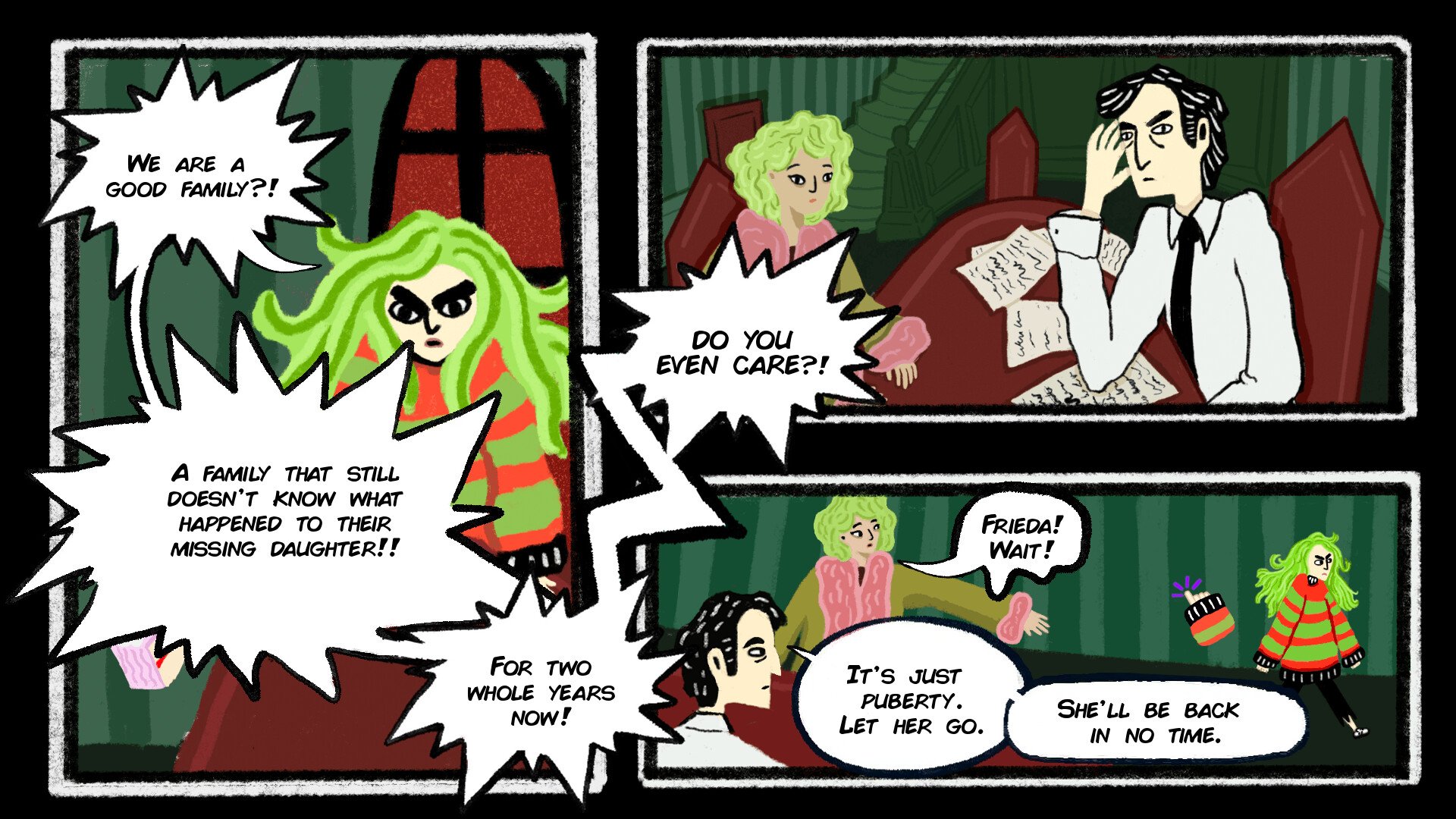 Frieda is an angry teen, furious and fed up because two years ago her sister disappeared from their home island without a trace. And ever since then, no one has really tried to figure out what happened to her. On her 14th birthday, something inside Frieda starts to shift. And no, it’s not just puberty. All that bottled-up anger about her sister’s disappearance comes back to the surface. And it feels... wrong. Stronger than it should be. Almost supernatural. Pretty soon, she realizes this isn’t a coincidence. She's slowly turning into a werewolf. The only way to stop the transformation is to uncover the truth about her sister before the next full moon rises.