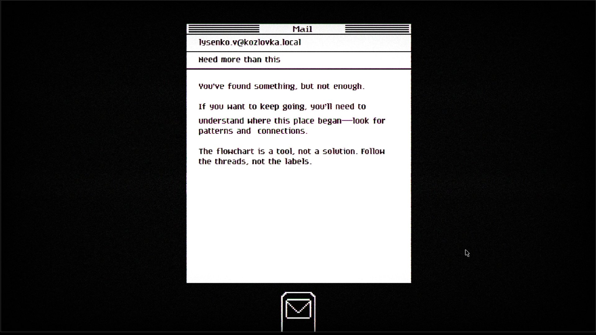 Step into the shoes of a journalist in the 90s as you trawl through a Wikipedia-like database to solve a smalltown mystery. Inspired by old operating systems, this monochrome-dripped OS simulator invites you to explore the secrets of the database, and find the center of the truth behind the web of articles.
