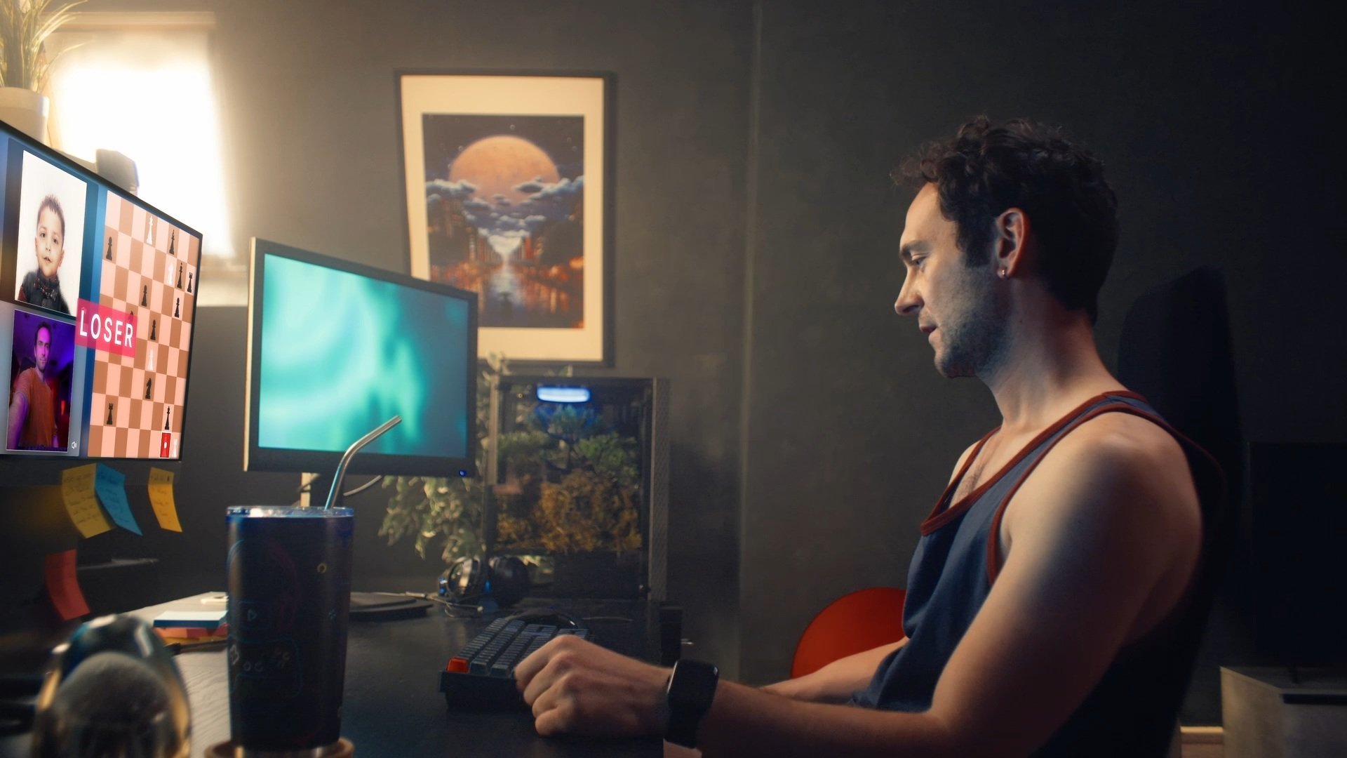 We follow the agoraphobic Cam (played by Vikings actor George Blagden) as he is suddenly thrown into a life or death game set squarely in his own apartment – all thanks to the titular online program. It works like the real-world Omegle or Chatroulette, but today as Cam logs in we see him video chat with a few random people before he stumbles upon a person in a mask. They play a game of Rock Paper Scissors with Cam and, no matter the outcome, proceeds to lock down the protagonist’s smart device-filled apartment and forces him to play three different games in order to escape. Lose just one, and that’ll be the end of Cam.