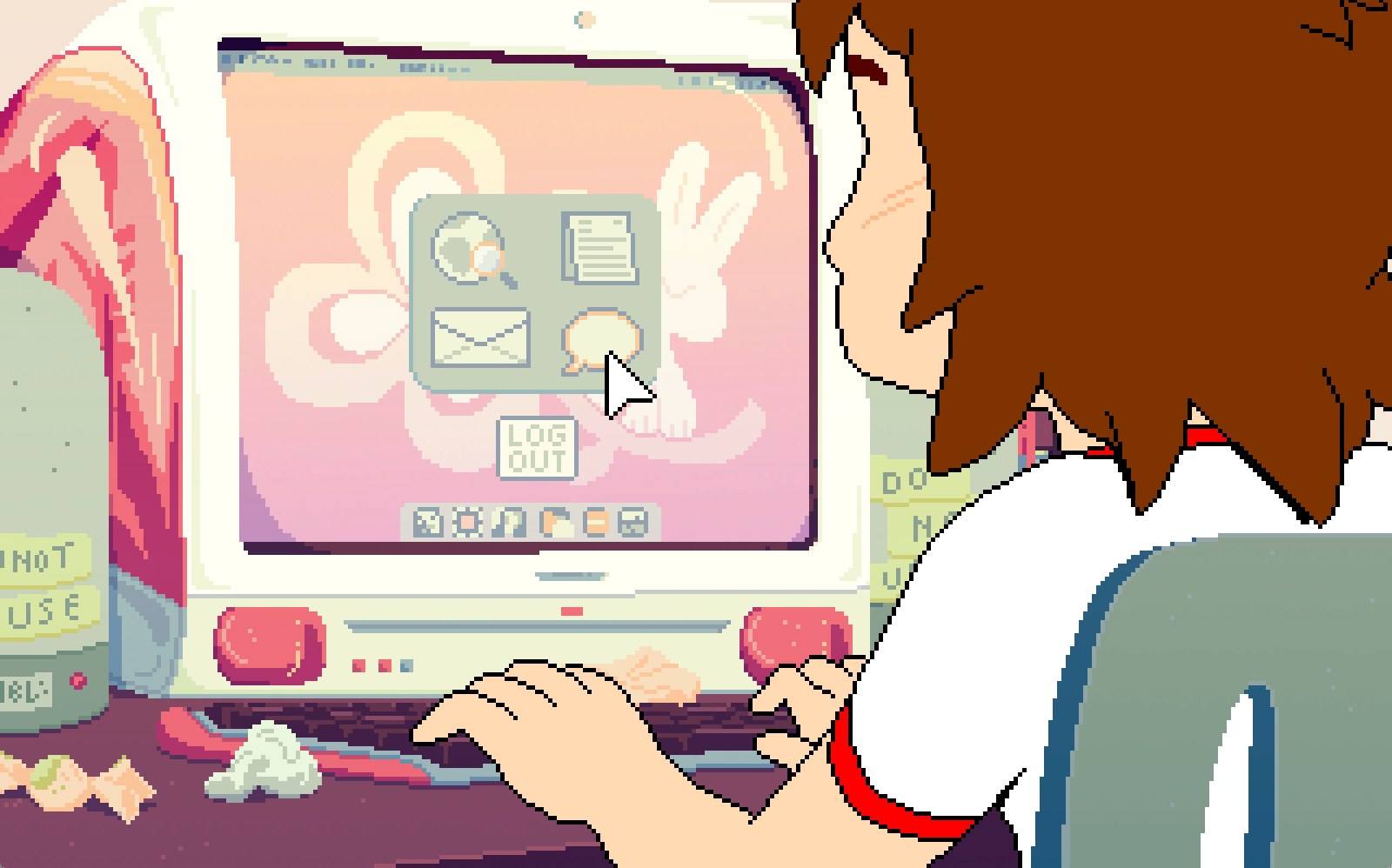 There’s a dress-up sequence that winks at games like Barbie Fashion Designer, in which Mara prepares herself to go out while a deliriously high-energy announcer (played, in the game’s only voiced dialogue, by the developer herself) berates her appearance and style. You’ll even be called on to read sheet music in order to play a snatch of piano; you’re provided what you need to get through it, however shakily, but while non-musicians probably won’t nail it on the first or second try, the point is that Mara wouldn’t either.