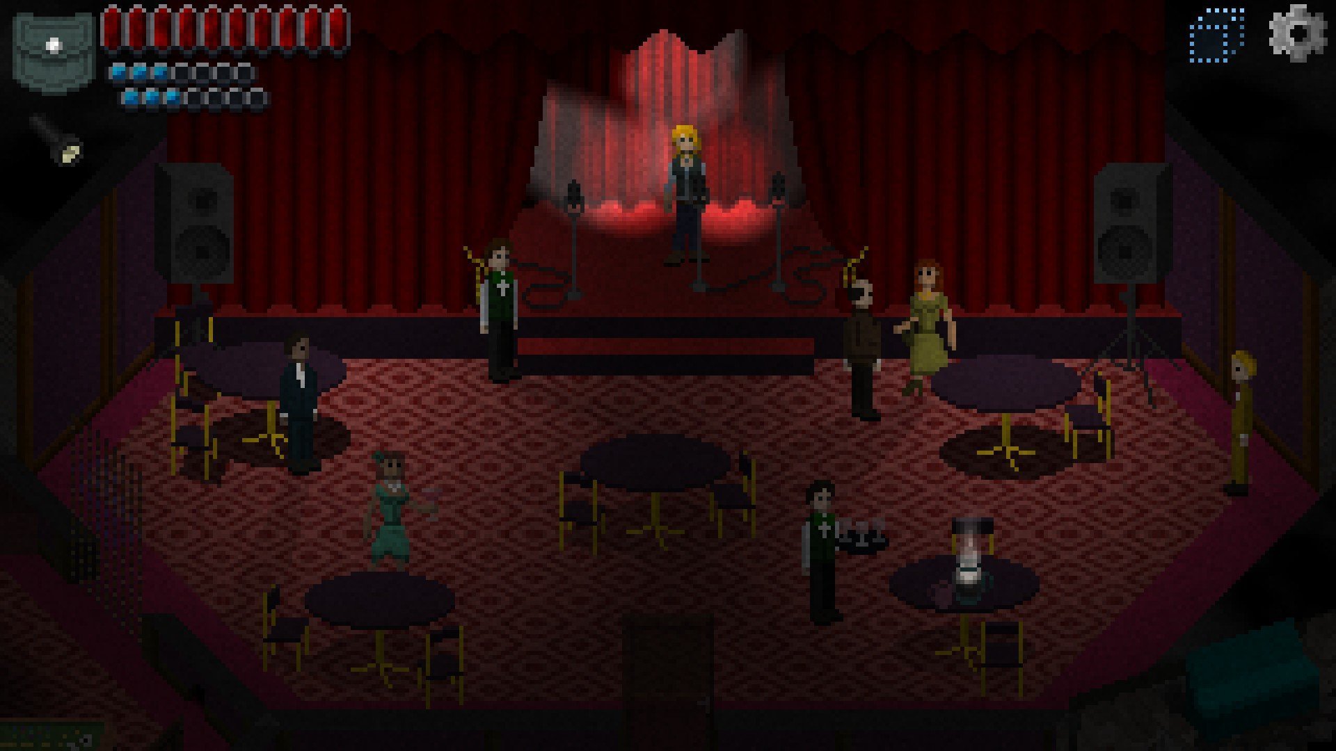 Dialogue is displayed in text boxes with no voice acting. Amy usually has a series of questions she can ask, leading down branching avenues and revealing information that she’ll carry with her into the next dream. I ran into a few translation errors while playing the English version, but none are overly jarring so it was easy to just pass over them. At any time you can change the way text is displayed, with two fonts to choose from: a classic one that matches the pixel art graphics, which I chose for nostalgia’s sake, or a smooth font for easier readability. In addition, you can adjust the dialogue speed.